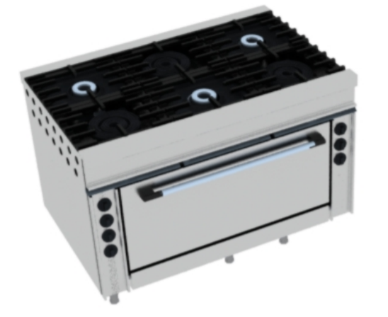 COCINA MURAL DE 6 FUEGOS + HORNO A GAS 3 FUEGOS DE 280MM DE 12KW 3 FUEGOS DE 120MM DE 9KW HORNO A GAS DE 700X700X320MM MEDIDAS 1350 X 900 X 850MM ALTO