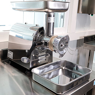 - Fácil limpieza e higiene de todos los elementos en contacto con la carne.